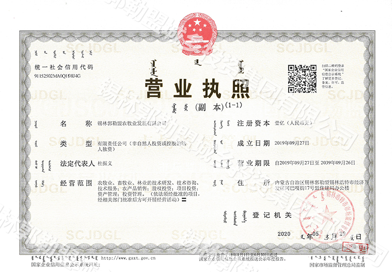 錫林郭勒盟農(nóng)牧業(yè)發(fā)展有限公司于2019年09月27日在錫林浩特市市場(chǎng)監(jiān)督管理局注冊(cè)成立,注冊(cè)地址是內(nèi)蒙古自治區(qū)錫林郭勒盟錫林浩特市經(jīng)濟(jì)開(kāi)發(fā)區(qū)阿巴嘎街17號(hào)盟住建局辦公樓,法人為杜振義,注冊(cè)資本金為1億元人民幣,具有獨(dú)立法人資格。